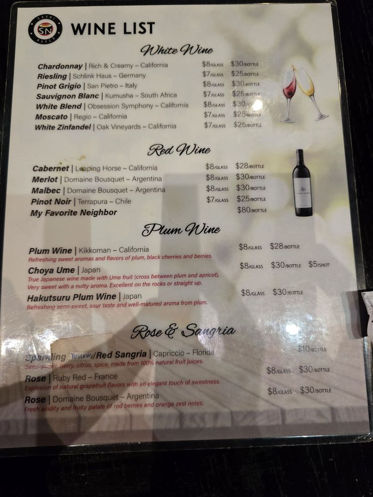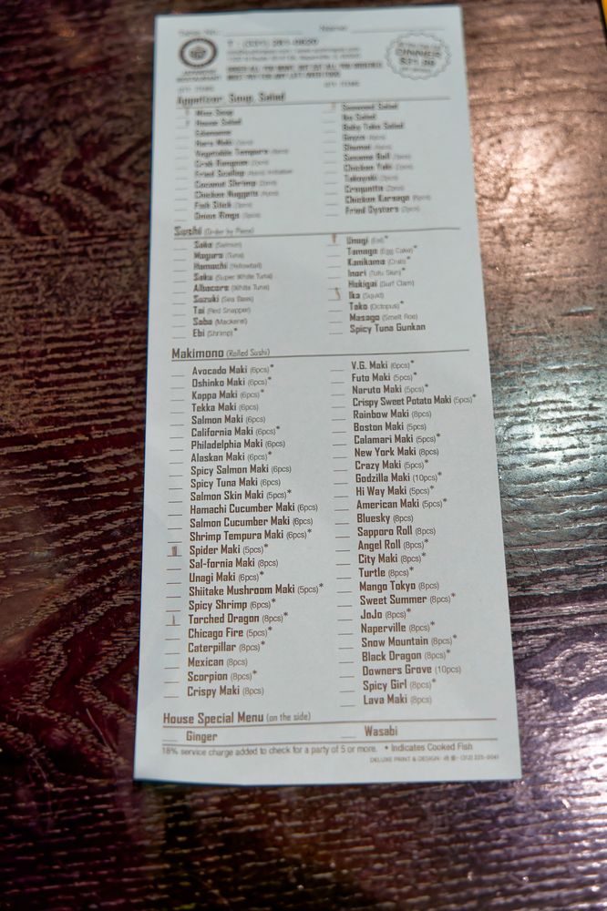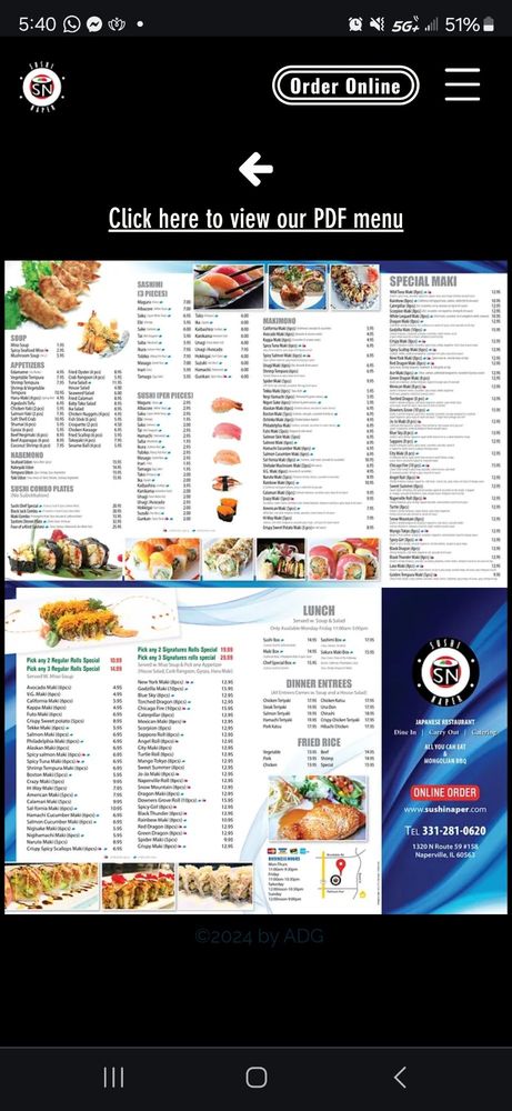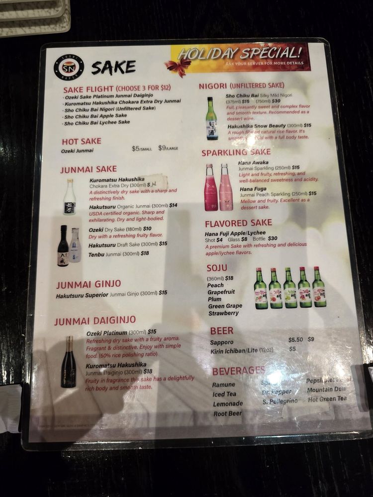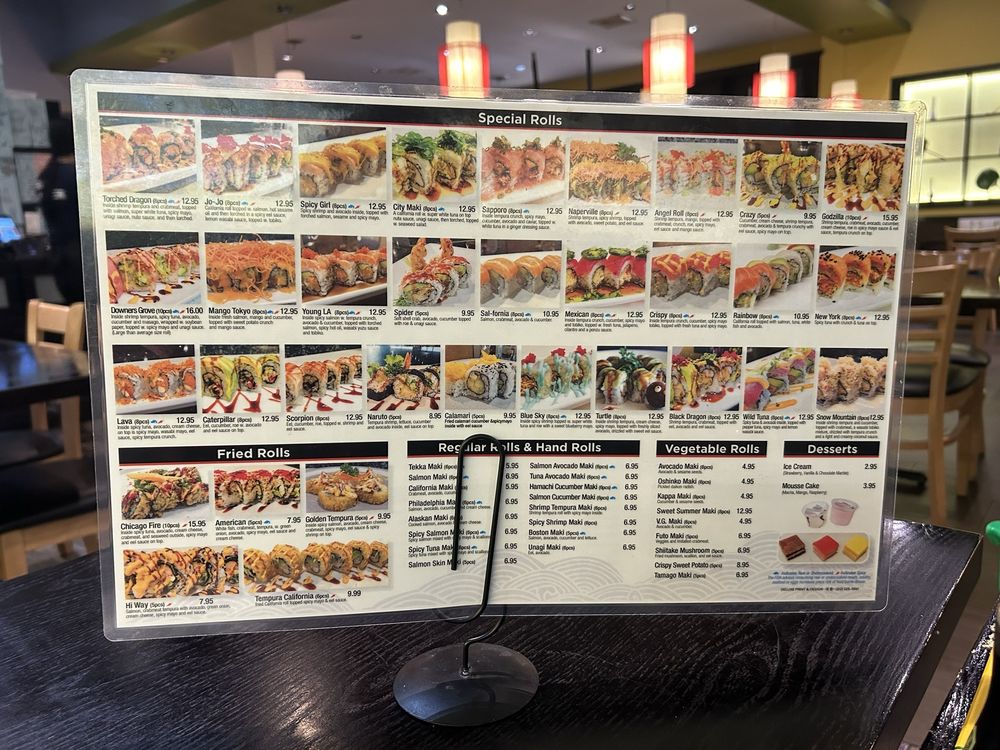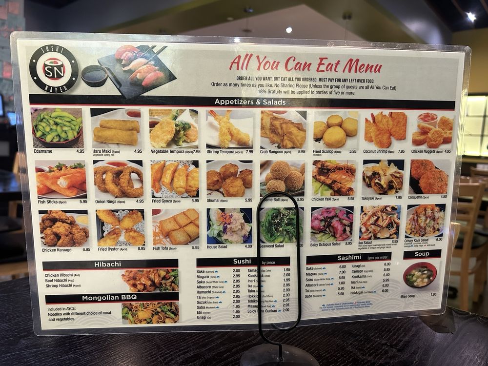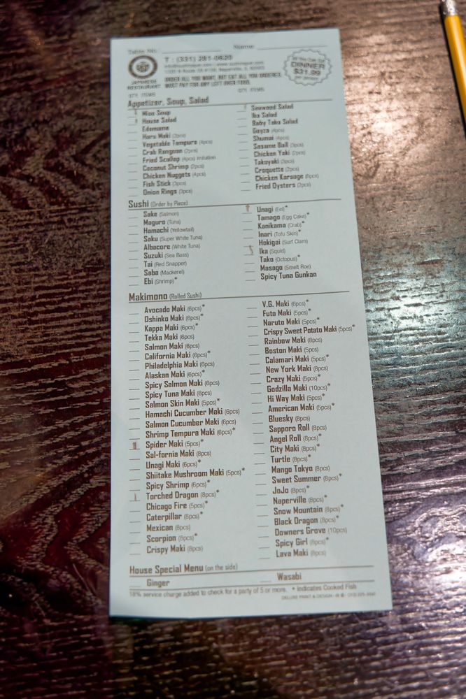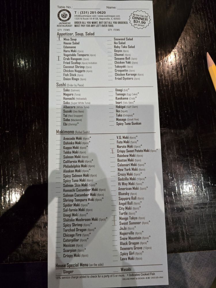 Introducing the menu at Sushi Naper, a trendy sushi bar in Naperville, Illinois. With a wide range of appetizers including edamame, shrimp tempura, and soft shell crab, there's something for everyone. The miso soup and spicy seafood miso soup are flavorful options for starters. When it comes to sushi, indulge in classics like tuna, salmon, and yellowtail, or try something unique like squid or sea bass. The menu is diverse, offering vegan and vegetarian options alongside traditional sushi favorites. The casual atmosphere is perfect for a lunch or dinner outing, and with options for delivery and takeout, you can enjoy Sushi Naper's offerings anywhere. Don't miss out on their delicious dishes and excellent service at this inviting sushi spot.